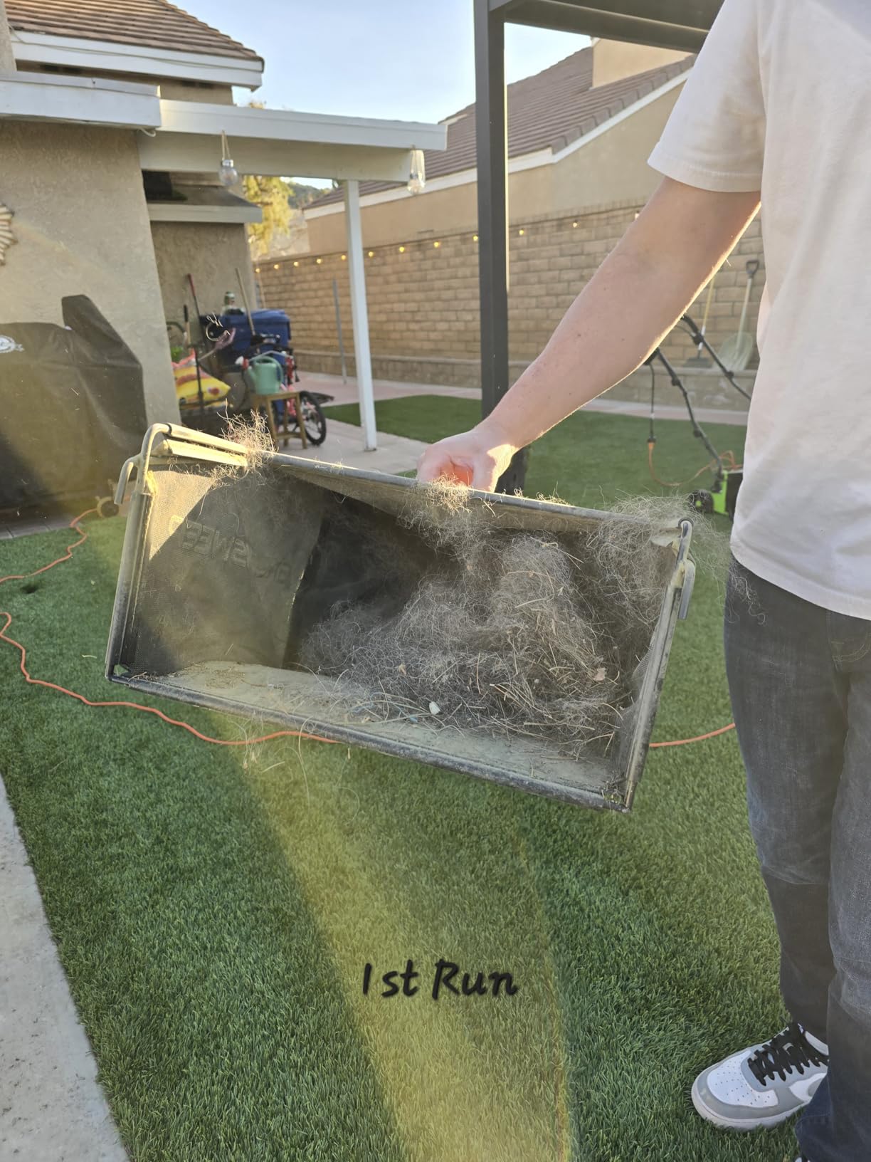 I’m so happy with it! It brought our seven year old turf back to life and picked up all the leaves and debris. The power and suction is amazing and the brushes.